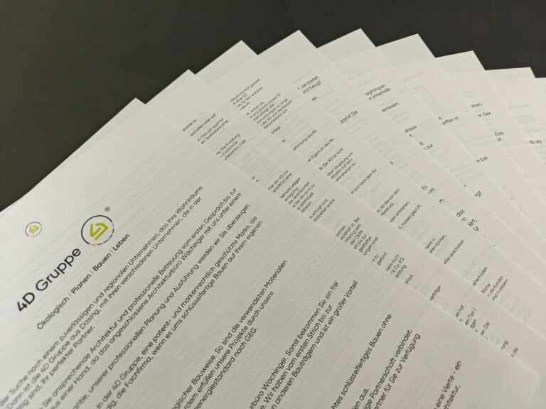 Wenn Sie z.B. vorhaben, Ihr mit uns geplantes Objekt nach der Fertigstellung zu veräußern, erstellen wir Ihnen gerne ein Exposé für den Verkauf. Grafische Gestaltung und das Texten ist eine von unseren angebotenen Zusatzleistungen.