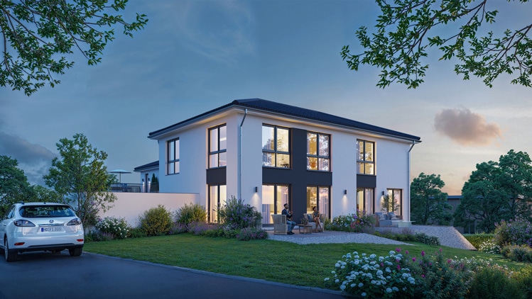 In Stirn, einem Ortsteil von Pleinfeld in Mittelfranken, haben wir neben einem Einfamilienhaus vier Doppelhaushälften mit Blick auf den Brombachsee geplant.
