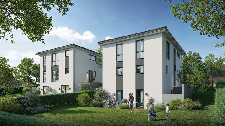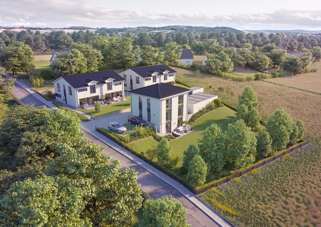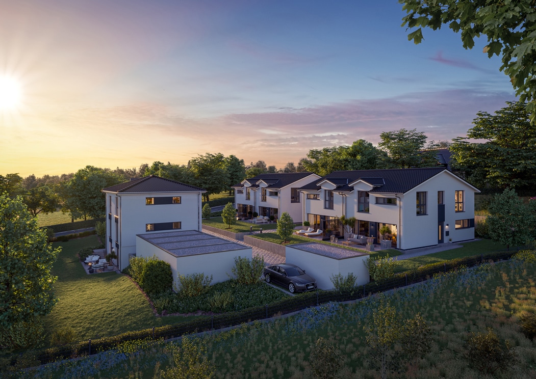 Alle gemeinsam haben großzügige Wohnbereiche mit Terrassen und eigenen Gärten, mehrere Schlafzimmer und Bäder und ökologische Luft-Wasser-Wärmepumpen samt zentraler Lüftungsanlage mit Wärmerückgewinnung.