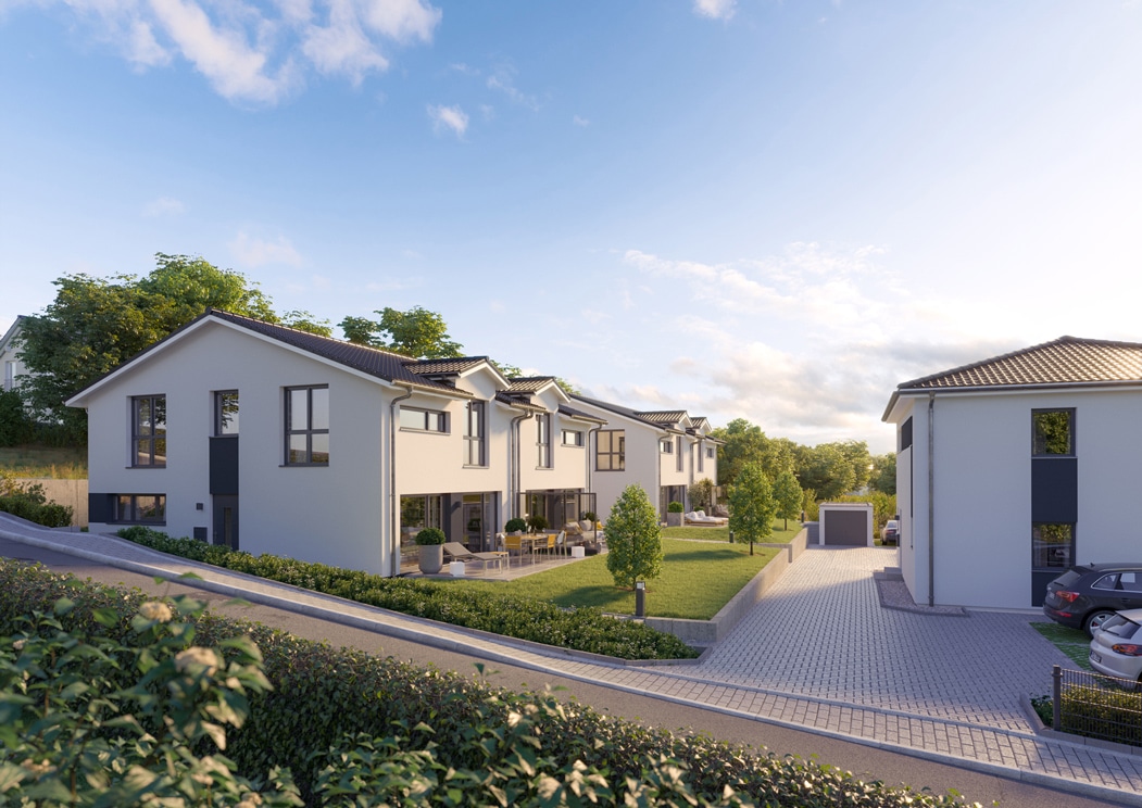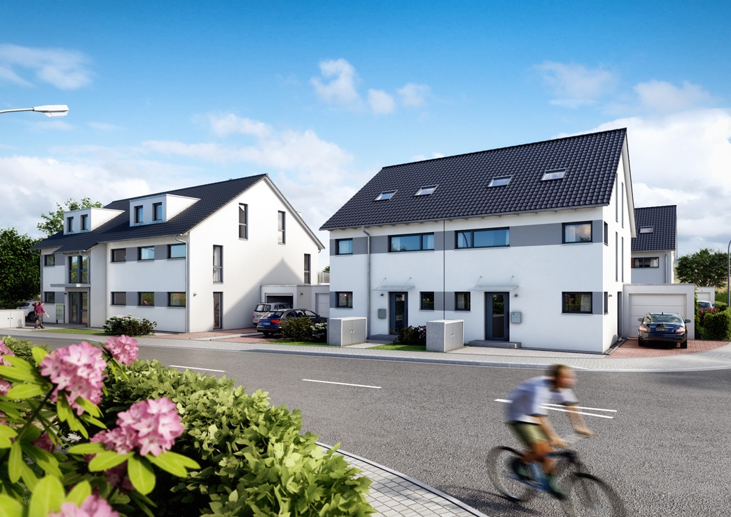 Hier sind neben einem Mehrfamilienhaus mit sechs Wohneinheiten auch zwei Doppelhaushälften sowie fünf Reihenhäuser entstanden.