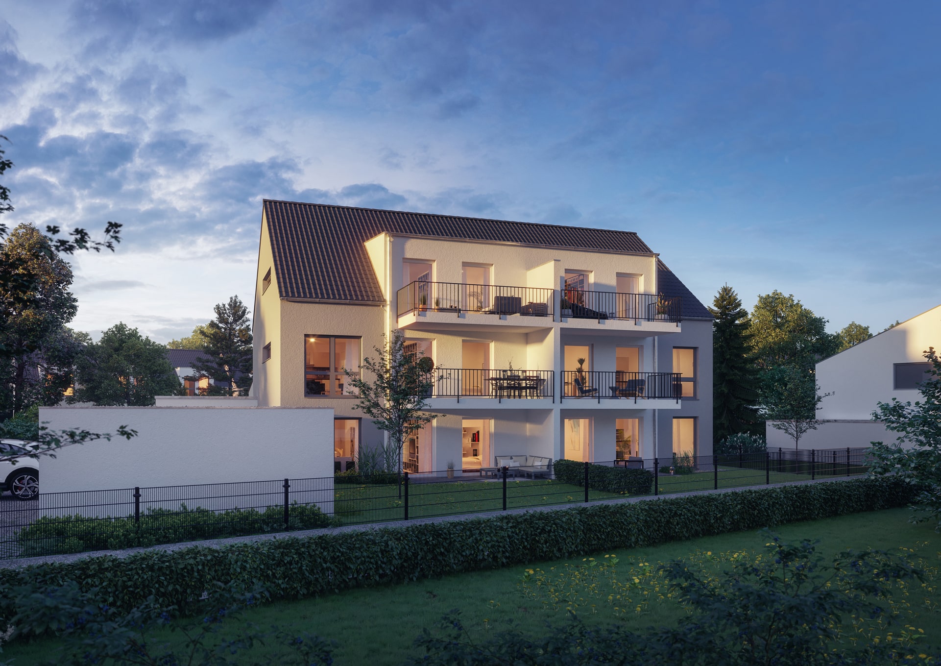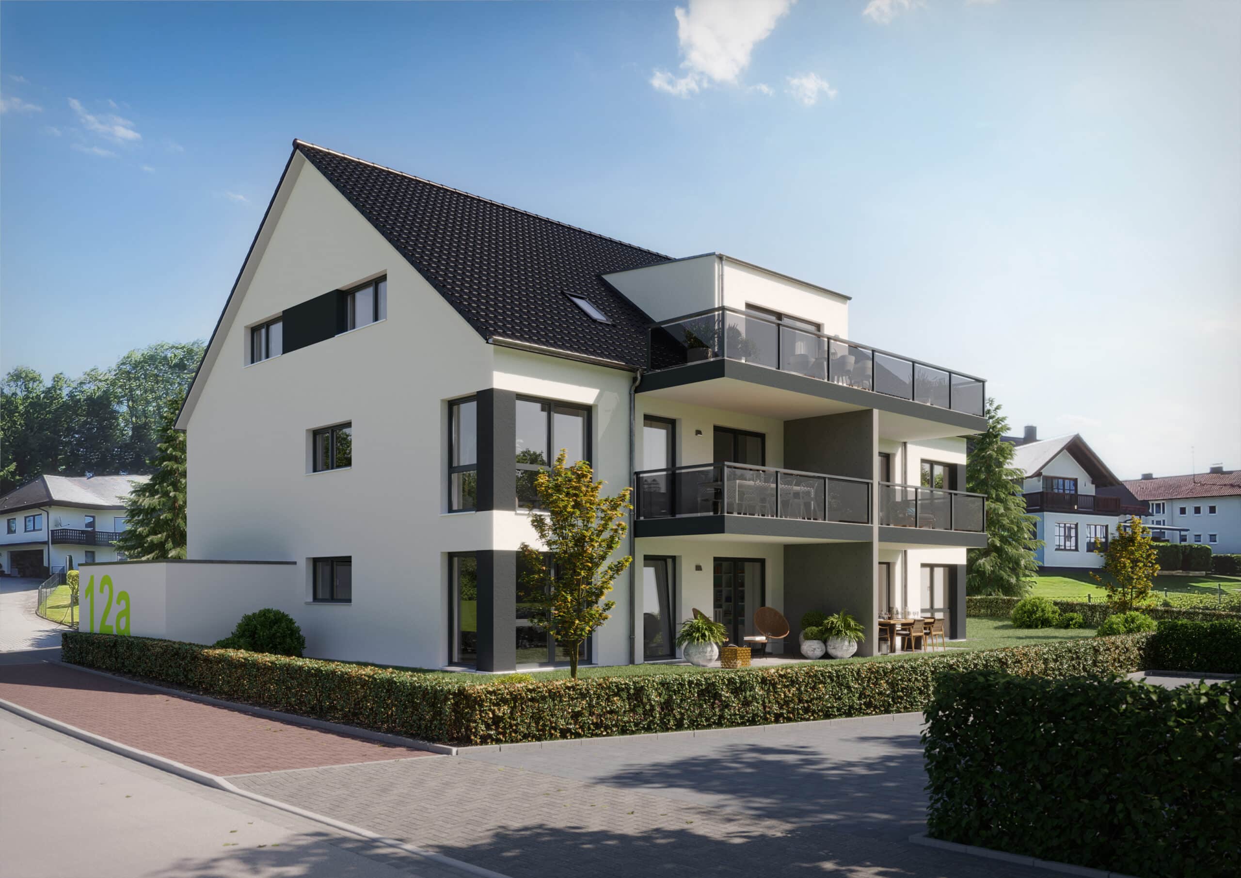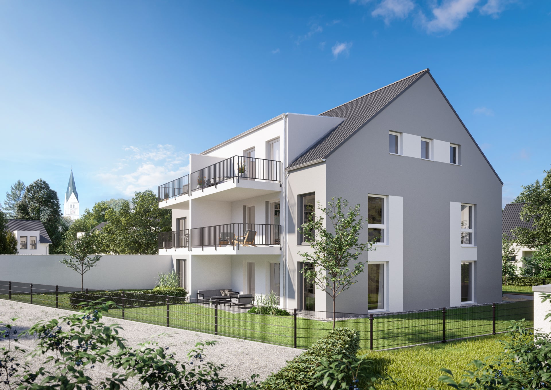 Im Ortsteil Oberbeuren der Stadt Kaufbeuren entsteht dieses Mehrfamilienhaus mit acht Wohneinheiten und Tiefgarage.