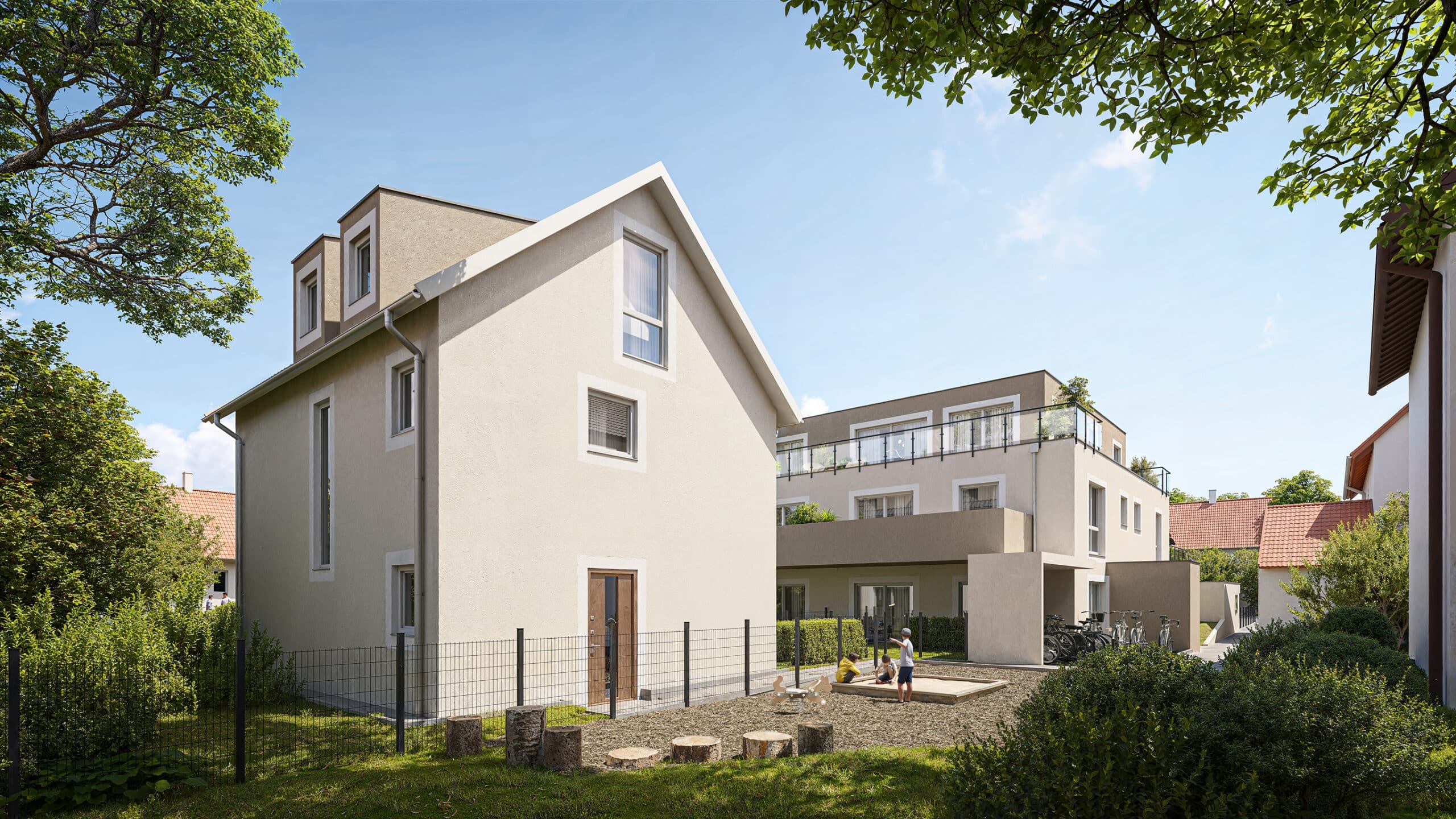 Die moderne Wohnanlage besitzt zwei Geschosse plus einem Penthausgeschoss.